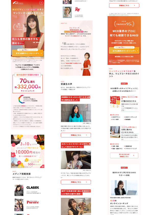 【意識した亊】スクロール離脱を防ぐためjqueryで動きをつけたLPを作成しました。